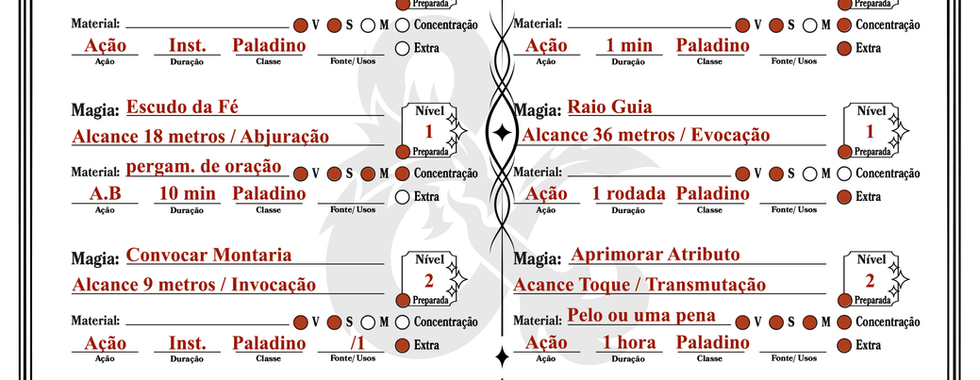 🐉 - Por ser super customizável, você pode escolher a ordem das folhas, ou até mesmo remover ou adicionar folhas, não quer magia na sua ficha? sem problemas.